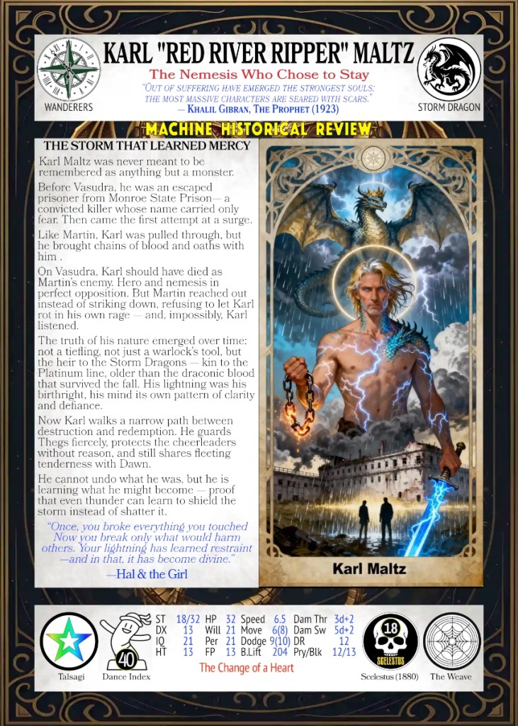 On Vasudra, Karl should have died as Martin’s enemy. Hero and nemesis in perfect opposition. But Martin reached out instead of striking down, refusing to let Karl rot in his own rage — and, impossibly, Karl listened.